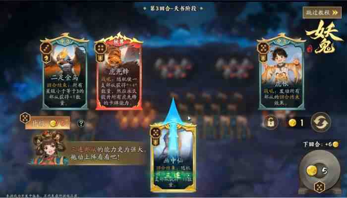 可合成(cheng)金色单位(战吼/离殇等天赋技能的强化),并获得「发现更高星级部从」的奖励牌。三连奖励给予的部从比当前天书等级(grade)高一级。因此可考虑在前期保留三连部从,升级天书后再将其上阵,已获得更高级奖励!