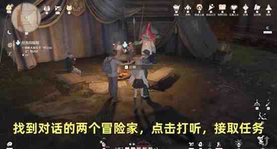 找(zhao)到两个对话的冒险家,点击打听,接取任务;