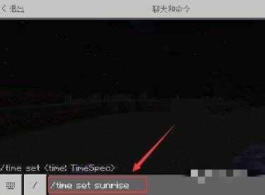 4、这里以日出为例,秘籍为“/time set sunrise“。