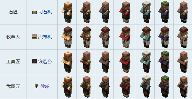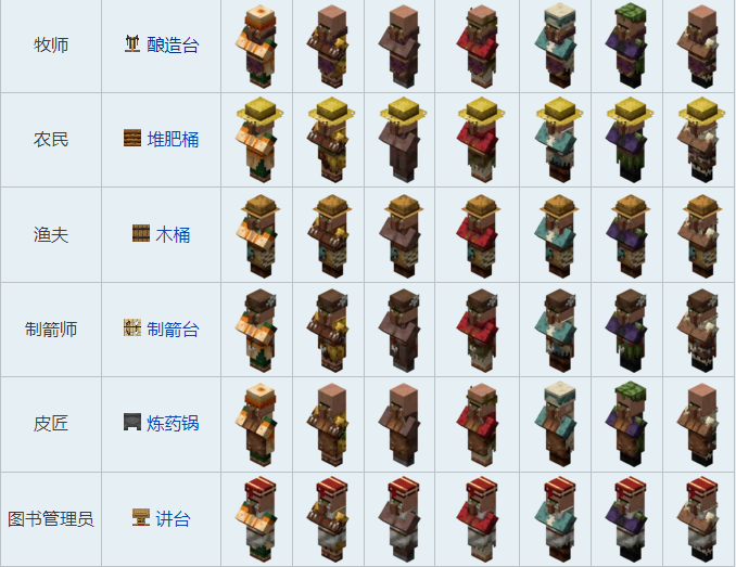 我的世界村民交易表图2026全村民职业模样图: