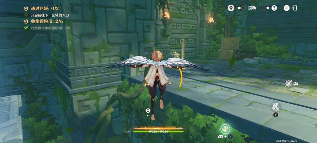 随后视角切换旅行者,点按两次跳跃键打开风之翼,并往机关的方向飞;