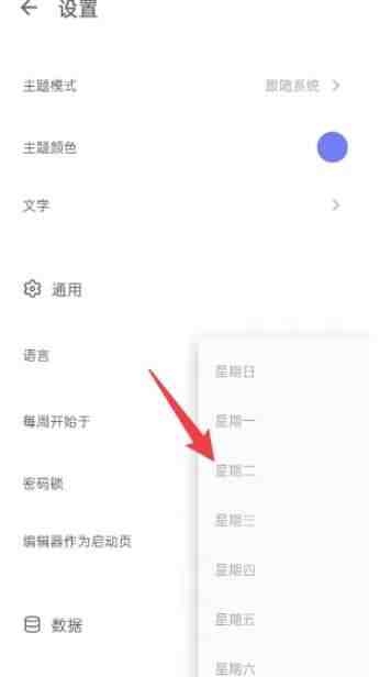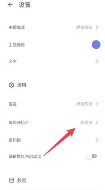 进入到设置菜单栏中,点(dian)击(ji)每周开始于选项(xuanxiang)。