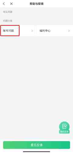 2、在帮助(help)与反馈页(ye)面中點击账号问(wen)题(ti)按钮(button);