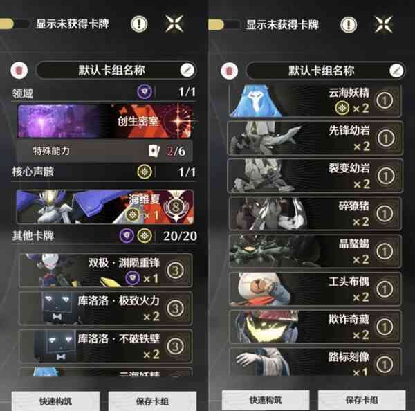 开局把场地点了我们是5牌4能量(liang),找到云海妖精的概率还是特别大的,找到后就做四个云海妖精叠先锋幼岩/晶螯蝎,如下图。因为我们是otk,回费奇藏用完就直接重(zhong)置掉,不用留场。