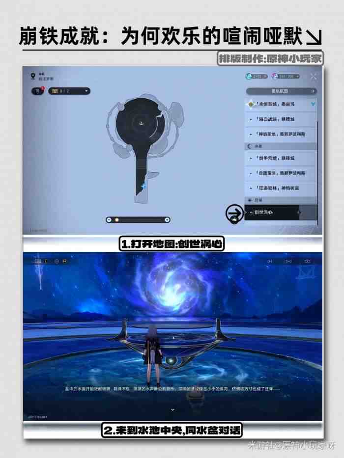 崩坏:星穹铁道为何欢乐的喧闹哑默成就说明玩家打开地图:创世涡心,来到水池中央,同水盆对话,对话完成再对话一次,喜欢的玩家们可以来一起看看下面崩坏:星穹铁道为何欢乐的喧闹哑默成就说明的内容。