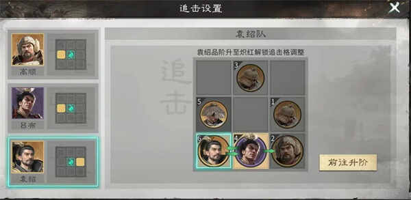 英雄站位:高顺、吕布、袁绍全部放置于第三排,现版本大部分阵容C位都是优先攻击中排和上排,放置第三排能规避大多数对C位的伤害,这种站位虽然会导致吕布起手速度慢于敌方,但可以极大的提高阵容生存能力。