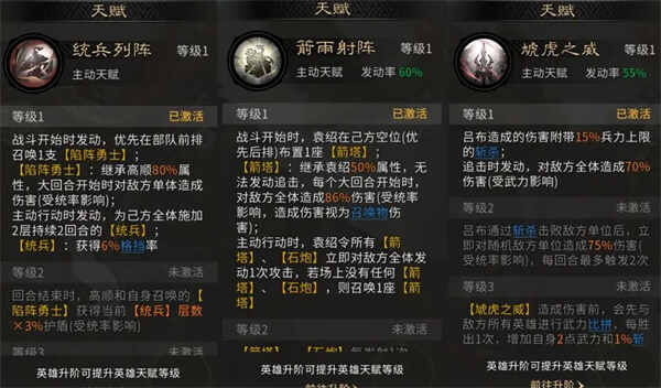 而袁绍天赋【箭雨射阵】的箭塔可以重复召唤,吸引敌方上排的火力输出,进一步保障阵容的生存能力,为吕布创造极佳的输出环境。