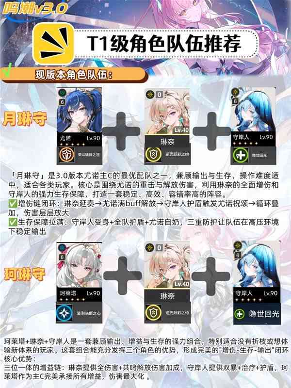 鸣潮3.0主流配队推荐(recommend)新日月队:奥古斯塔+尤诺+琳奈