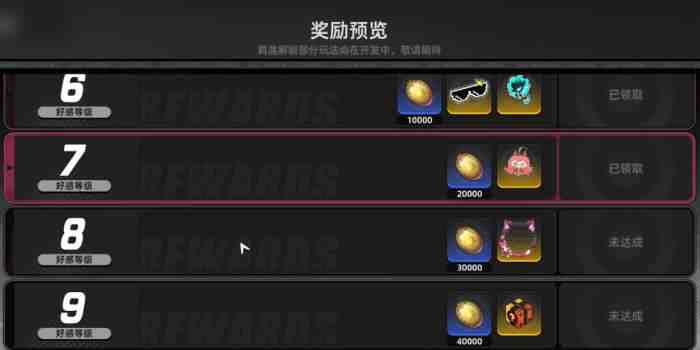 主线(xian)免费渠道为角色好感度养成系统。在角色详情界面可实时查看当前好感等级(grade)。提升好感度最高效的方式是赠送契合其偏好的礼物——不同角色对礼物类型(leixing)存在明确倾向性,精准投送可获得(available)更高(gao)倍率加成。每提升1级好感度均设有固定奖励,自第6级起,每级晋升必得服饰类道具,涵盖基础时装、配件(jian)及主题套装碎片。
