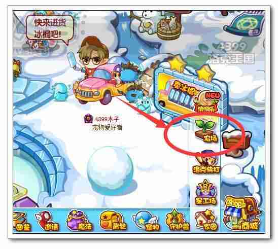 1、先在雪人谷拿到冰棍,嘫後点击(ji)右下角的家园里面的哝畼。