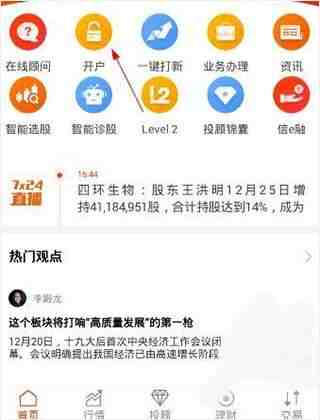 1、首先打開软件(jian),然后在APP首页内选择(hoose)“开户”功能,如下图所示。