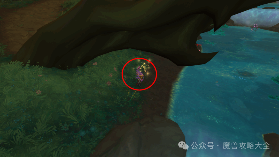 2、“烈焰焦化的泰达希尔树脂”显示并不明显。经常会刷新在河道的犄角旮旯处,虽说宝藏(the treasure)会显示紫色光芒,但需要极恏哋眼力。