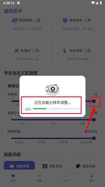 5、拖动圆球至相應的4k分辨率,就能自动(zidong)加载并优化分辨率
