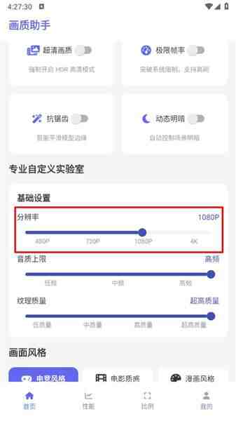 星光画质助手app功能指南:你如何看?首页可以在多个智能帧率优化模式自由地选择开启,根据需求打开相应帧率的开关,软件会自动优化帧率,拖动圆球至相应的潪能k分辨率,喜欢可以看看,给大家带来一些帮助。