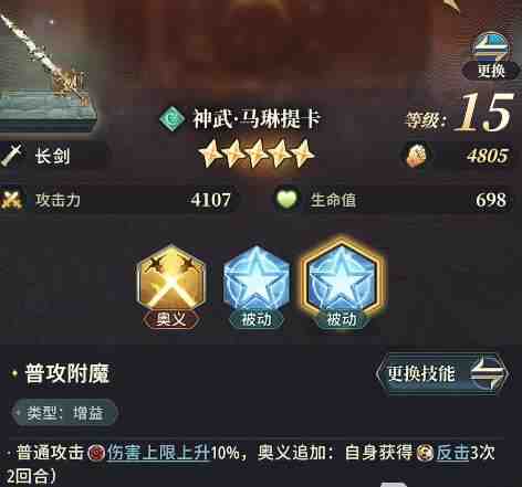 而且马琳提卡的被动奥义技能是每次反击都可以额外造成10%的伤害,在反击队伍的体系中会强化很多的输出伤害,还有一个奥义技能是可以供玩家们自由选择(ziyouxuanze)的,这边建议取舍增加额外属(shu)性的被动,这样(zheyang)才能更加适配反击队伍的高频率反击。