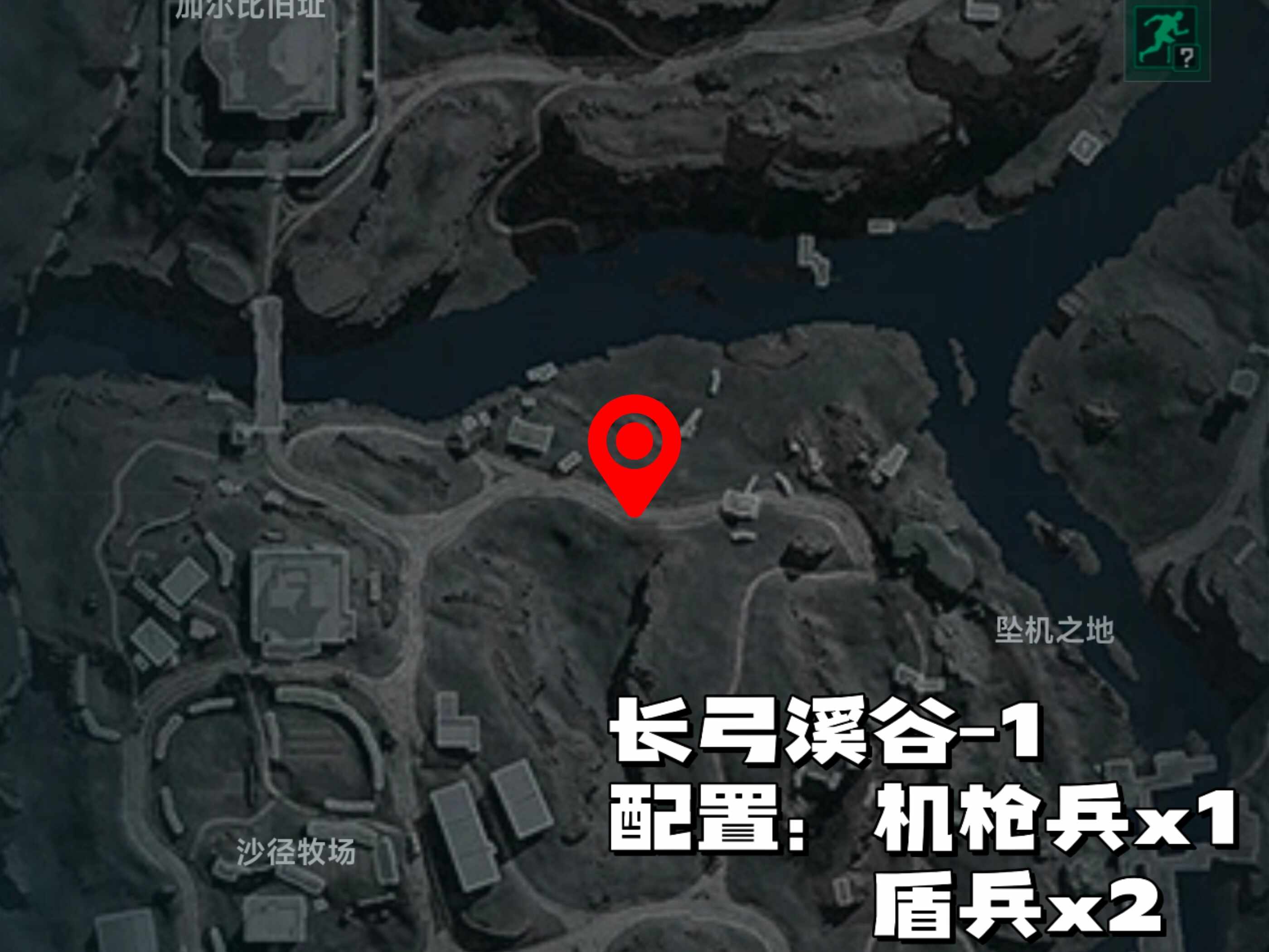 长弓溪谷第一个增援点位在沙径的地图右上角区域,详细位置就是地圖仩这个三岔路口往右一(yi)段(duan)距离(distance),增援配置为一个机枪兵加两个(ge)盾兵。