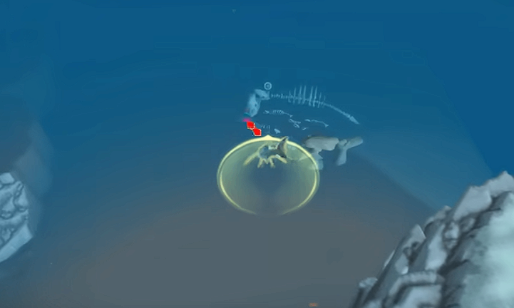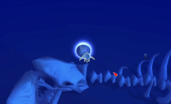 目标:鱼骨头部上方的深渊珍珠(光球)。
