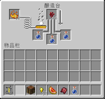 2、然后(hou)打开(kai)酿造台,放上地狱疣,下面放上水瓶。如图所示
