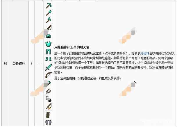 ②经验修补等级Ⅰ经验修补与耐久度有关(guan),是用经验换耐久度的方式,增大物品的寿命。这个魔咒属于宝藏(baocang)型附魔,只能通过宝藏(baocang)或者钓鱼获得哦~