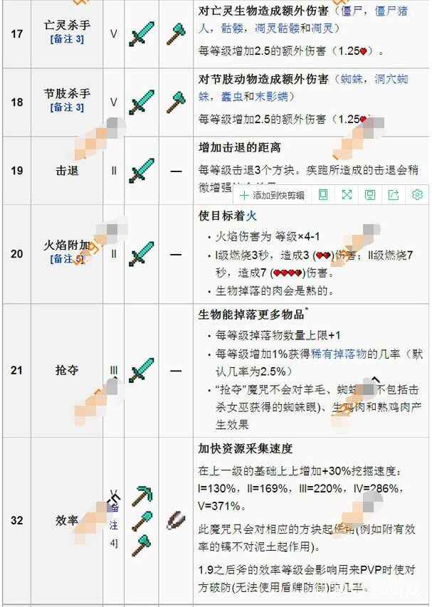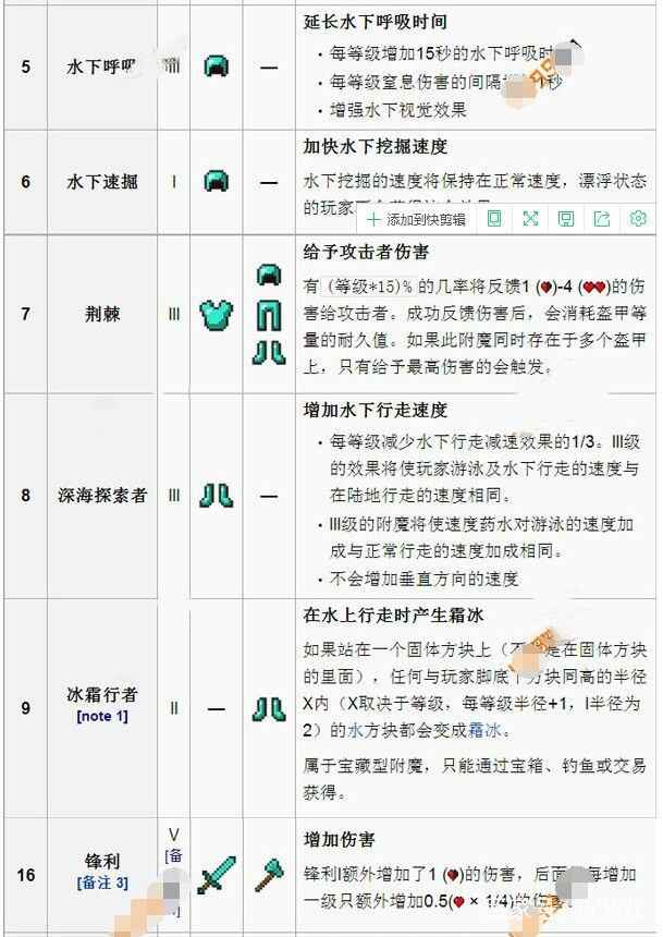 ?锋利等级Ⅰ-Ⅴ可以增加武器的伤害。剑可以通过附魔台获得此魔咒,斧头可以通过铁砧与附魔书得到~