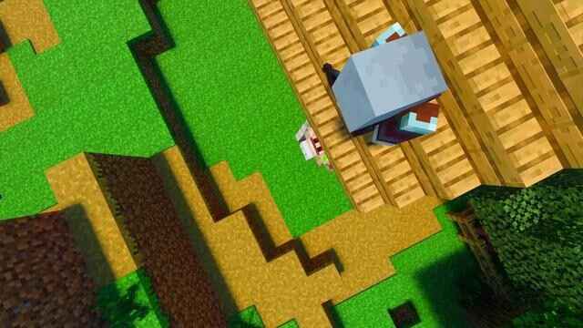 其他村庄带来的是美景,这座村庄则给你带来一些诡异。在村庄的一座房(fang)屋(wu)上面有一个掠夺者,下面有一个红眼铁傀儡。这一幕特别有趣,像极了小时候被动物们追我们躲在树上的画面。