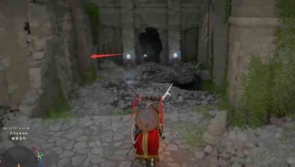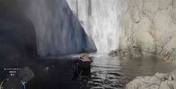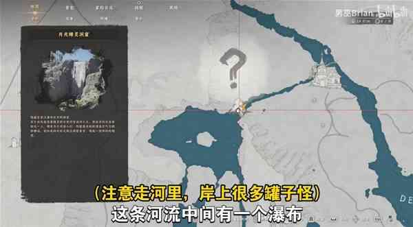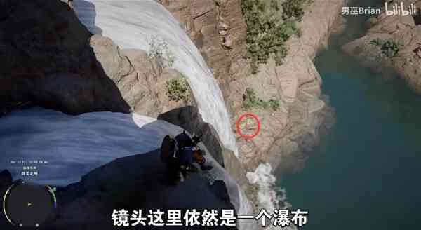 走到瀑布附近(fujin),使用刺击攻击穿过去。