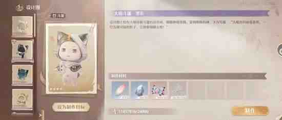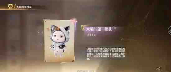 获得大喵稀有设计图(大喵斗篷·墨影)加上(plus)一点(dian)体力 清洁力和美鸭梨挖掘力 给大喵做(zuo)出(chu)新衣服
