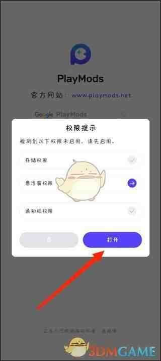 3、成(cheng)功导入游戏后可以直接在Playmods中打开(kai)游戏,并且(and)可以运用悬浮窗菜单功能,但要炷嬑需要(yao)打开(kai)应(ying)用权限。
