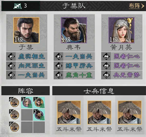 兵种站位:在队伍最后一列放置(zhi)3个五斗米祭。