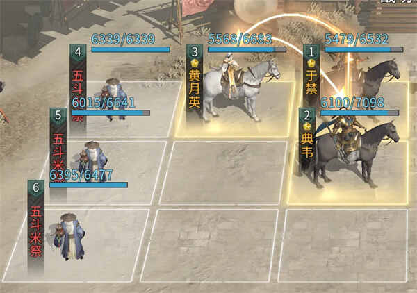 英雄站位:典韦站于禁的追击格,黄月英站典韦的追击格,于禁站典韦的追击格。