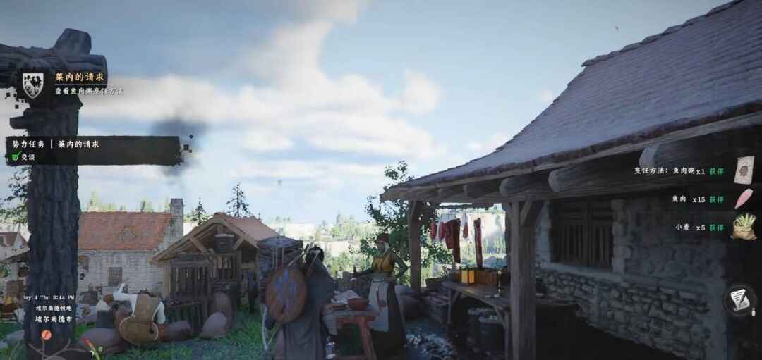 在告示板查看告示,接到势(shi)力(li)使命“莱内的请求”,然后(ranhou)到肉铺找菜内对(dui)话(hua),获(huo)得(de)鱼肉粥的烹饪(pengren)配方。