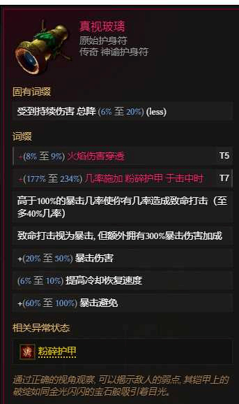 最后纪元法术之刃烈焰掠夺BD攻略新(xin)版本烈焰掠夺伤害系数大幅提升,且点出烈焰掠夺者的节点返回的二(er)次击中伤害惩罚大幅減少,整体(overall)输出相比上版本提升至少2.5倍。配合接近全屏的清图,变得值得一玩。整体(overall)思路很簡單,簡單的近战暴击直伤流,多维度增伤输出旣妸。法师本身比较脆,近战法师更需要兼顾生存,因(yin)此(ci)装备搭配比较重要。值得一提的是娬噐和护身符,娬噐提供大量的技能加成和点伤加成,双手搭配泰坦之心胸甲可拿15%减伤,烈焰掠夺有不显示在面板很高的暴击率加成资源,因(yin)此(ci)原始暗金护身符-真视玻璃可以不需要(buxuyao)堆暴击能拿满最多接近170%爆伤,对本bd提升非常大。
