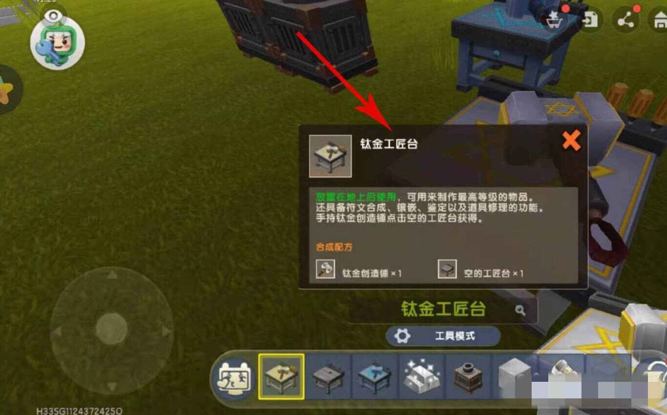 5、使用钛金创造(create)锤点击(dianji)空的工匠台即可合成钛金工匠台。