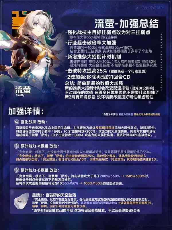 崩坏星穹铁道流萤加强培养介绍这次版本更新还上线了许多新内容,有新遗器,新地图,新角色,还有老角色的加强也上线了,流萤就是其中之一,接下来就是崩坏星穹铁道流萤加强培养介绍的具体内容了。