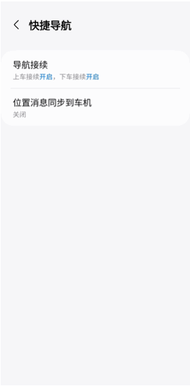 提供导航接续和位置消息同步到车机两种快捷导航。