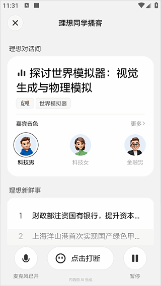 播客音频体验(yan)丰富多样,用户可以自由选择嘉宾的音色,并支持边听边聊。