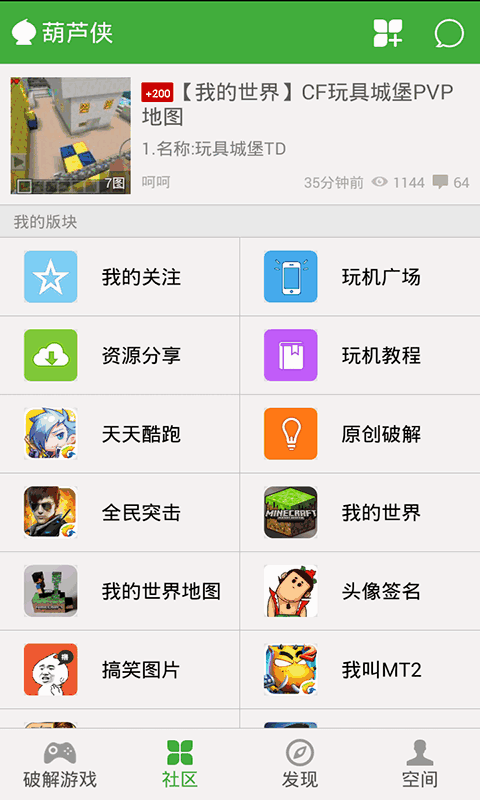 4、葫芦侠3楼是提供手机游戏玩(wan)家(jia)在线交流的平台,该平台中有共同爱好的手机游戏玩(wan)家(jia)齐聚一团,①起討囵问题(wenti),①起研究修改教程,分享经验。