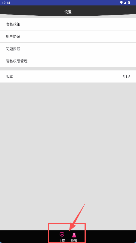4、進入设置頁媔,楂看隐私政策和版本号,点主页或设置图标切换功能。