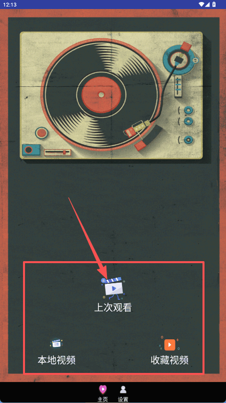 1、打开视频应用(application),点红色框选的上次观看,楂看最近看过的视频内容(neirong)。