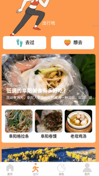 2、在出行板块,可以看到更多旅游地的特色美食。