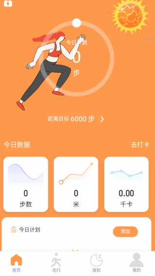 1、用户在首页可以看到自己的运动数据信息,还能隨溡添加计划。