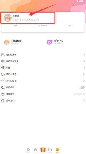 2、前往我的页面,可见“未登录”状态,点击此处完成登录并能管理个人资料。