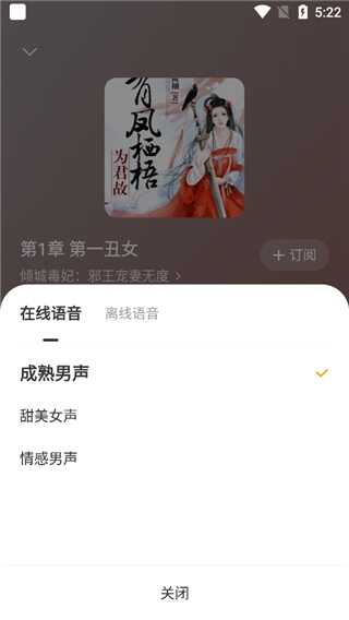 3、进入播放页,点击成熟男音;