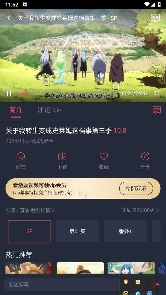 2、在频道界面首先为你推荐很多热门动漫。