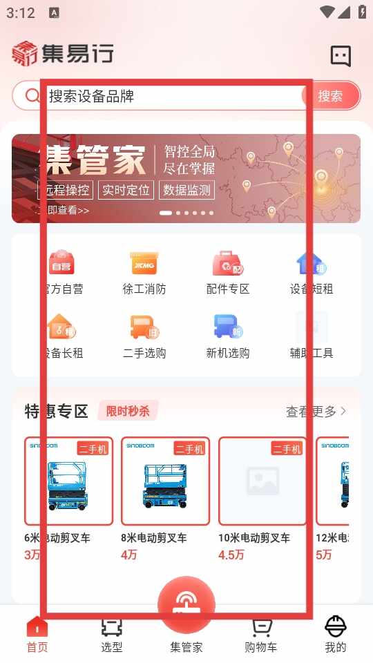 1、打开集易行APP,在首页能找到设备长租选项,点击它即可進入长租设备的相关页面,开启设备长租的操作流程。