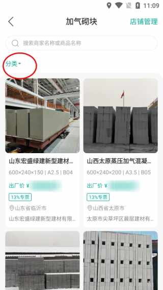 2、如加气砌块,点击分(fen)类(lei)
