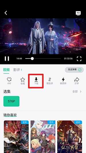 1、在播放頁面点击(ji)下载功能。