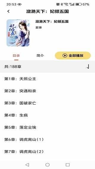 3、一键点击爱听的小说,展示详细(xi)目录内容。