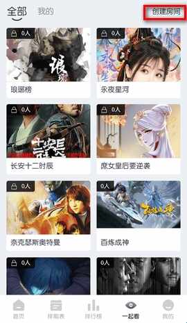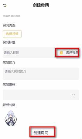第二(second)步:选择想看的(watch)视频,房间简介和房间密码没有强制要求设置,点击【创建房间】就成功了