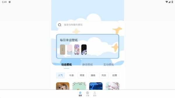 1、进入app首页,提供了静态、动态等不同类型壁纸,选择超多。